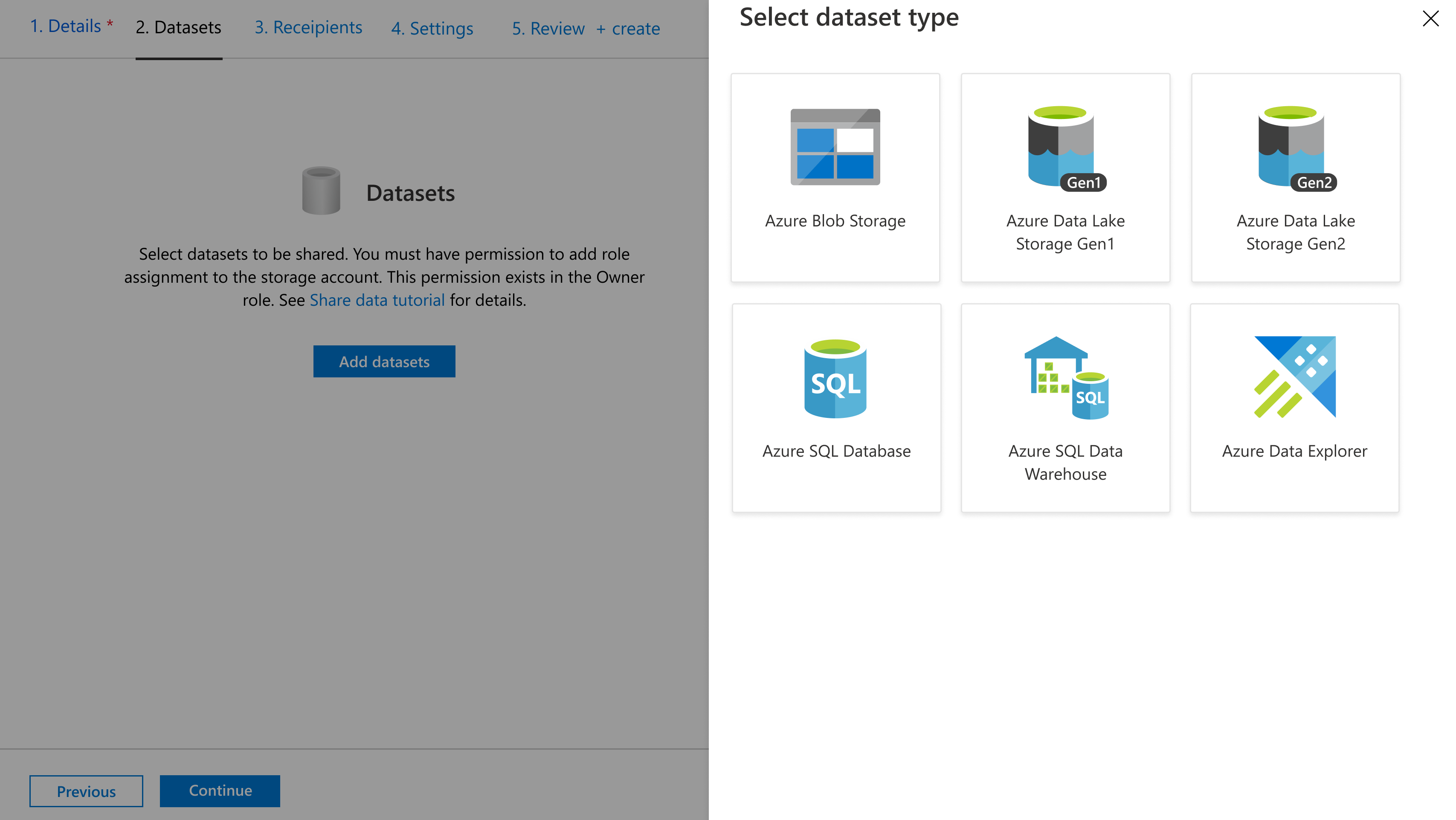 Combine internal data with partner data for new insights. Share and receive data in any format to or from Azure Synapse Analytics, Azure SQL Database, Azure Blob Storage, Azure Data Lake Storage and Azure Data Explorer. Data Share will support more Azure data stores in the future.