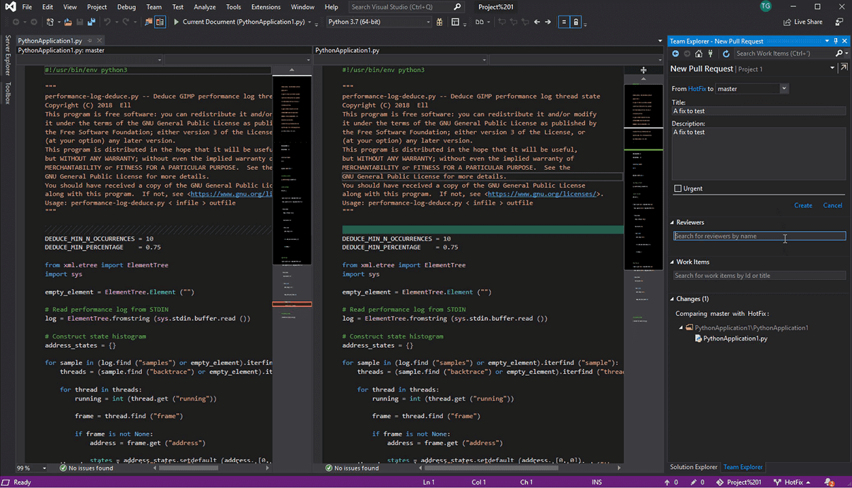 Reduce ramp-up time on Git and be more productive with built-in GitHub extensions for Visual Studio. Create and publish repositories, manage pull requests on GitHub, and review source code right inside Visual Studio.
