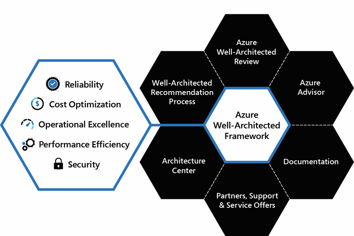 Optimize the quality of your cloud workloads using a collection of technical guidance, tools, and resources centered on the five pillars of the Azure Well-Architected Framework: