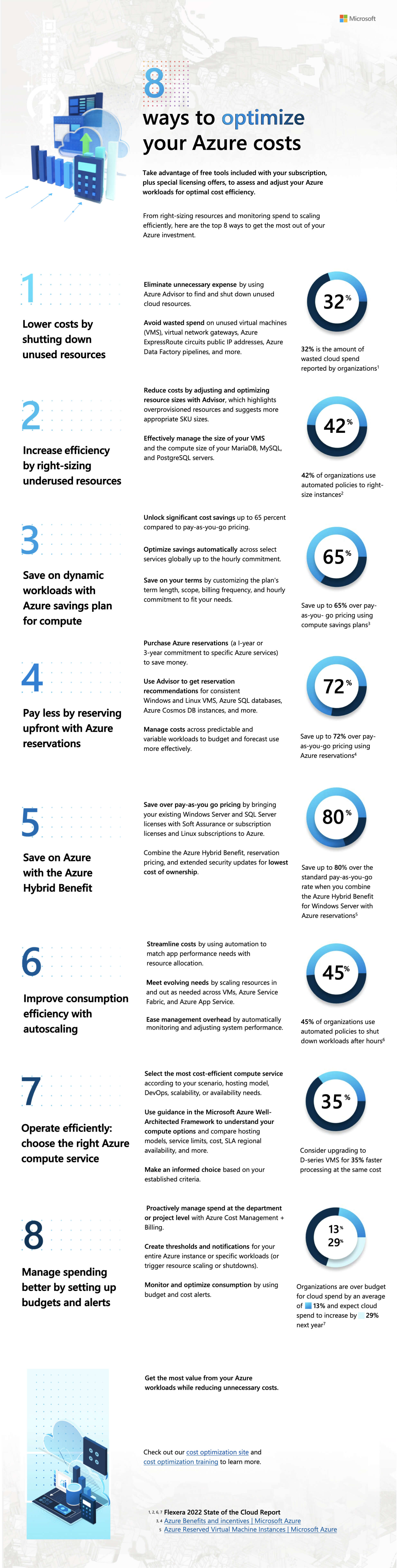 - Follow your Azure Advisor best practice recommendations for cost savings.