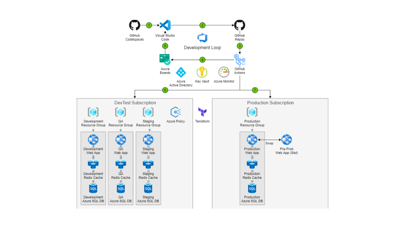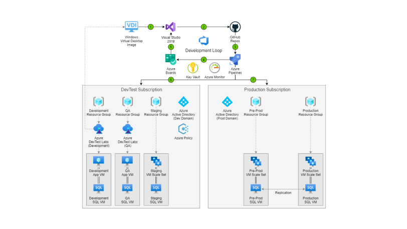 Empower your team to quickly provision dev/test and pre-production environments to deliver quality products, applications, and services. Use purpose-built, managed developer services like Azure DevTest Labs, GitHub Codespaces, and Azure Virtual Desktop to easily manage and optimize dev/test environments, tenants, and subscriptions, without sacrificing governance, cost controls, or security.