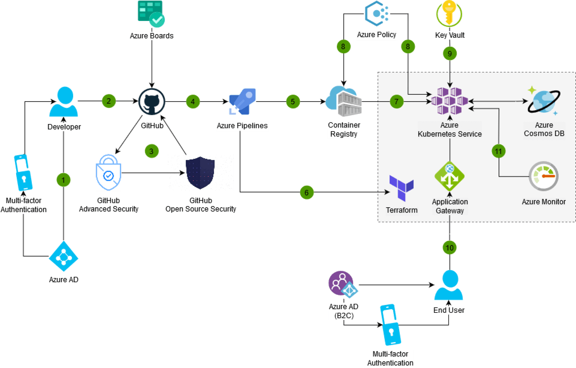 Help protect your application, code, and infrastructure with tight access control. Azure offers leading identity services for your organization’s internal users and external consumers who access your applications. Use the DevSecOps tools and identity platform to secure access to your code on GitHub, manage granular permissions for Azure resources, and offer authentication and authorization services for your applications.