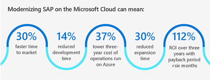 • SAP runs more than 40 of its IT landscapes, including the deployment of SAP S/4HANA, on Azure.