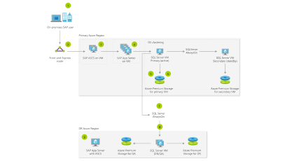 This NetWeaver on SQL Server application solution illustrates how a user request flows through an SAP landscape built on NetWeaver using Azure Virtual Machines to host SAP applications and a SQL Server database.