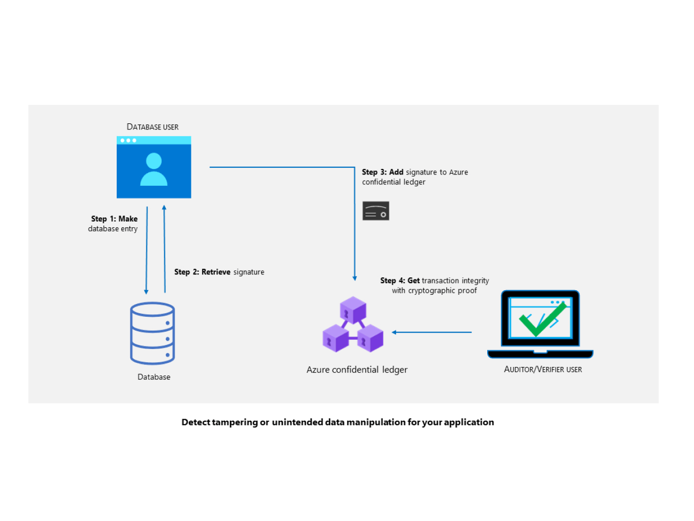 Azure confidential ledger provides a managed and decentralized ledger for data signatures or logs backed by blockchain-like Confidential Consortium Framework. Maintain data integrity by preventing unauthorized or accidental modification with tamperproof storage. Protect your data at rest, in transit, and in use with hardware-backed secure enclaves used in Azure confidential computing.