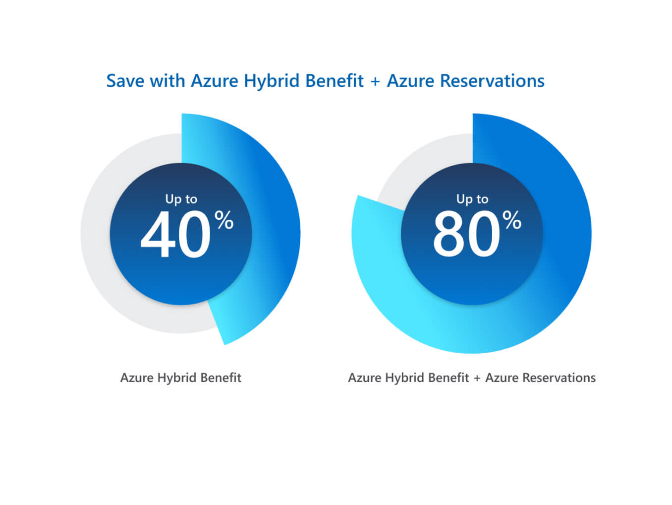 • Yes. Azure Hybrid Benefit lets you use your existing Windows Server licenses with Software Assurance or Windows Server subscriptions for significant savings on Azure. Depending on your edition of Windows Server, you can convert or reuse your licenses to run Windows Server VMs on Azure and pay a lower base compute rate. For each license, Azure will cover the cost of the OS for up to two VMs while you pay only the base compute VM costs.